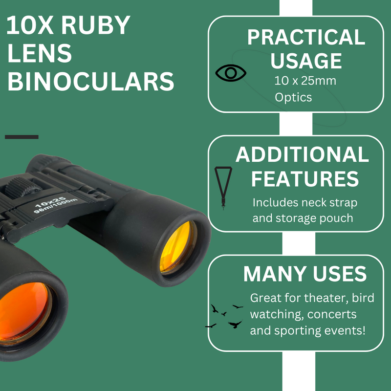 10x Small Black Binoculars - 25mm Ruby Lenses (Pack of: 1) - MG230R