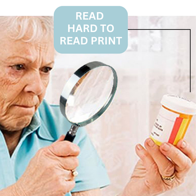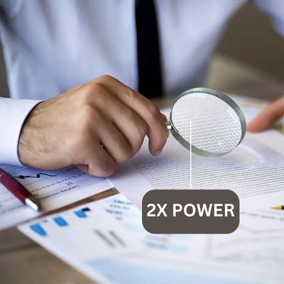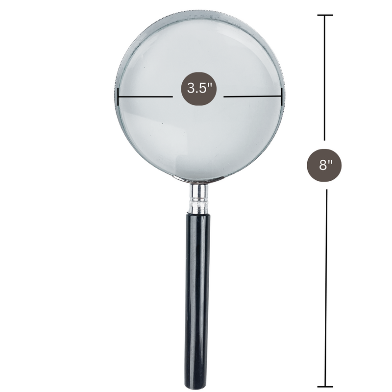 This is a wonderful magnifier for every day use. You can keep it in your office, or on your coffee table, to do all of your everyday reading tasks. It has a sturdy black frame, shiny polished silver-tone frame, and a beautiful, distortion-free glass lens.* 3.5" Diameter Lens * Sturdy Black Handle * Polished Silver-tone Frame * Lens Has 2 X Power * Excellent Quality