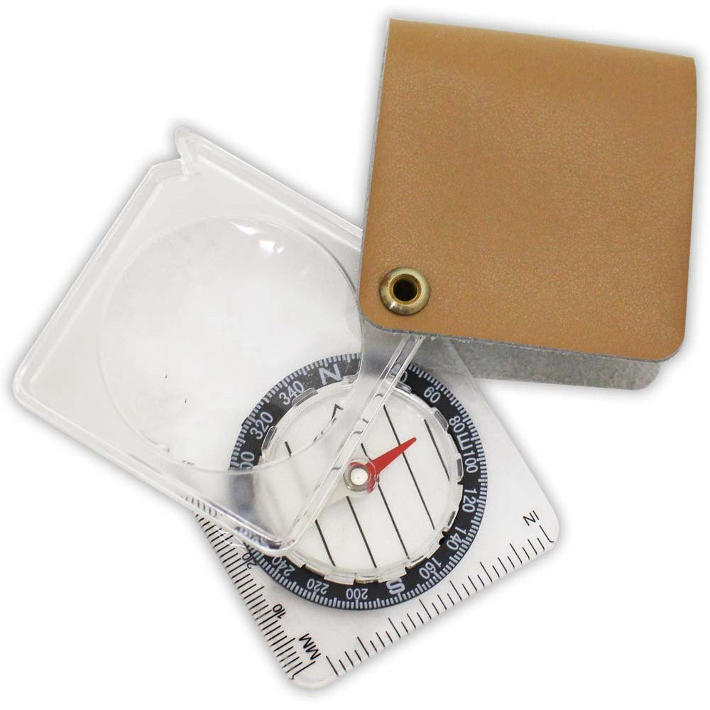 2" X 2" COMBINATION MAGNIFIER & COMPASS W/ LEATHER COVER - PC-20750