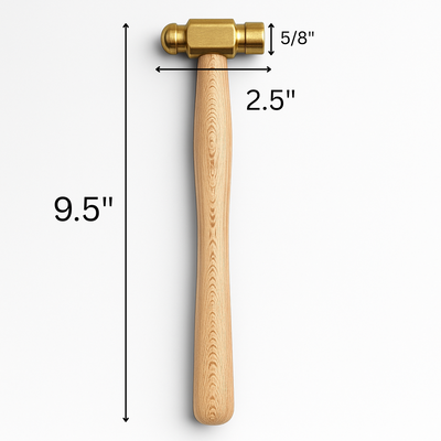 This precision brass hammer is a must-have for any jewelry maker or metal crafter. Designed with safety and performance in mind, the brass head ensures spark-free strikes, making it ideal for delicate work on the bench block or anvil. The solid wood handle offers a comfortable, secure grip and lasting durability. Whether you're flattening, bending, or shaping metal, this hammer delivers reliable control with every strike.