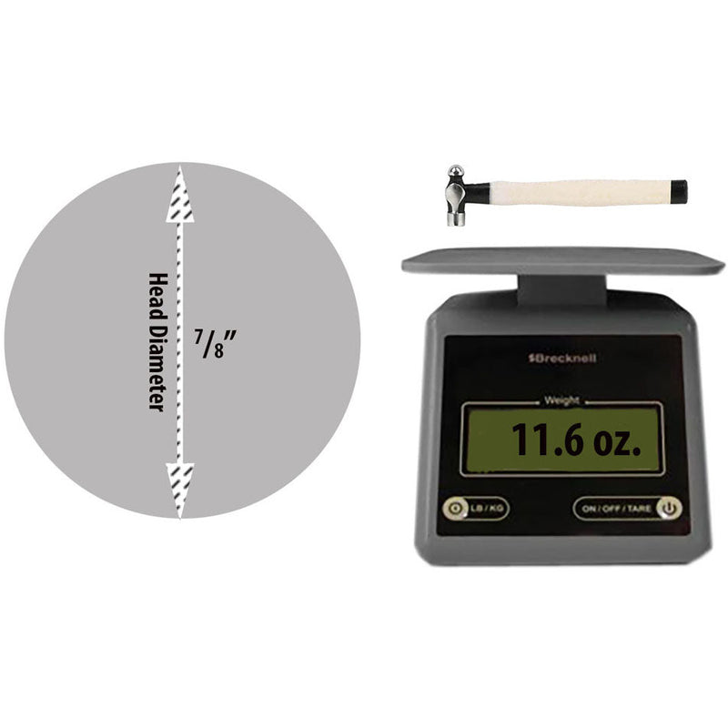 When precision and strength are a must, this is the cross pein hammer for you! Heavy duty steel head; 2 tone smooth (paint coated) wooden handle. Overall approx. 11" long with 7/8" diameter head.
