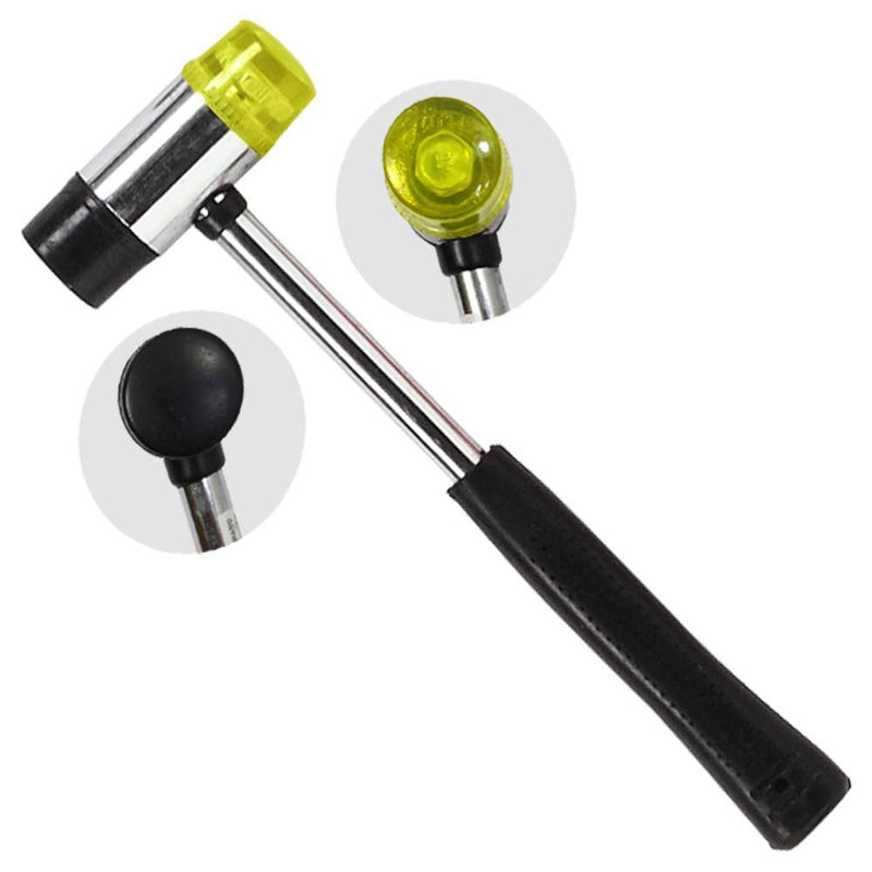 This unusual hammer has dual heads-one is made of hard rubber, and the other is made of nylon, yellow and transparent. Each head has a striking surface of 1-1/4 inches. This hammer has a steel handle, and a rubber grip for comfort. You will want to use this hammer for more delicate work. Neither of these heads will make sparks, or leave marks on your metal projects.* Great For Leather Tooling & Punch Work; 10 inches long: Weight 11 Ounces * Great For Jewelry, Leather-craft, Woodworking - Interchangeable Heads * These hammer heads will not spark, or cause damage to precious metal surfaces * Excellent as a jewelers bench tool, to use with more delicate procedures A* Solid steel handle, with a rubber grip for your comfort, and as a shock absorber