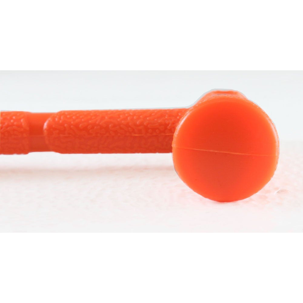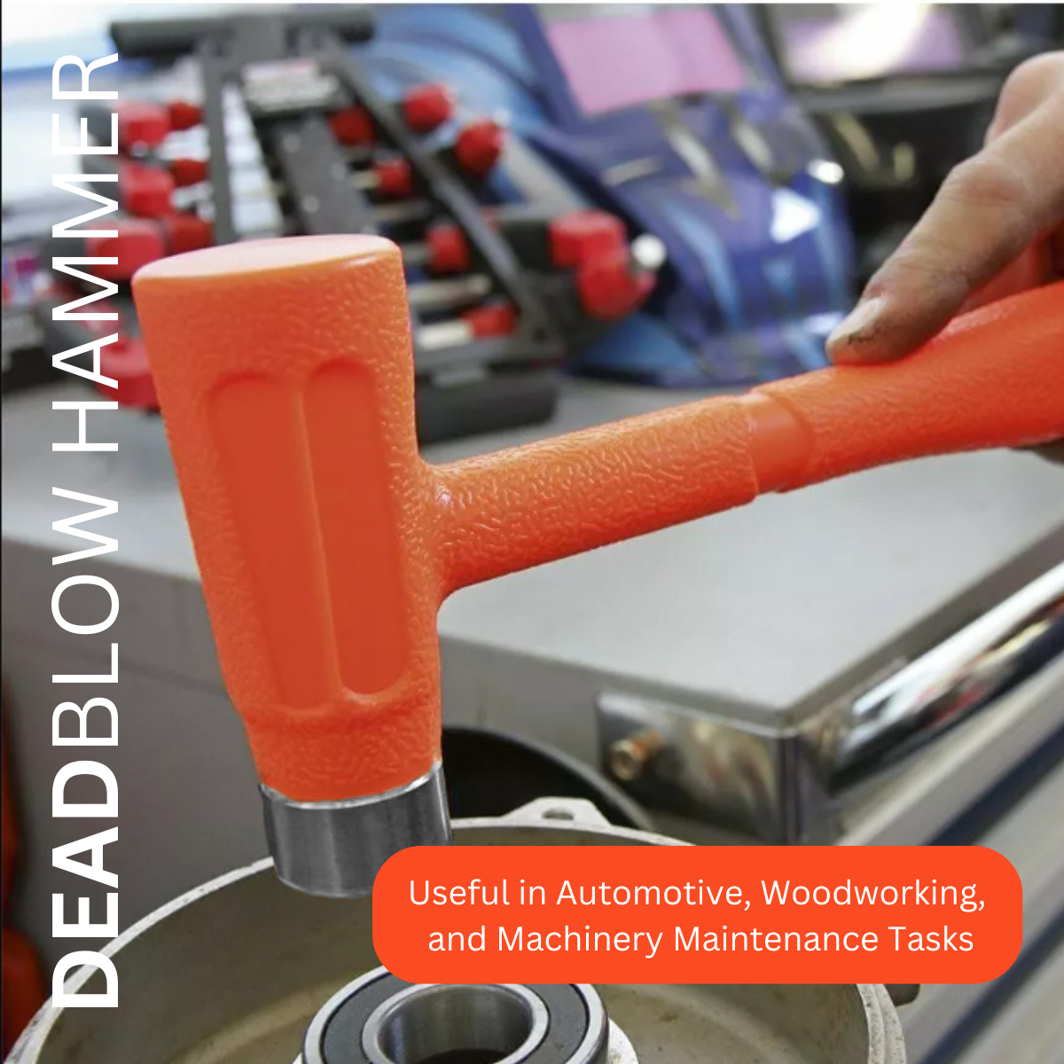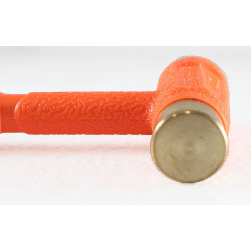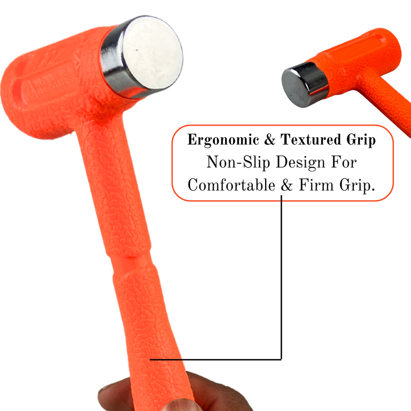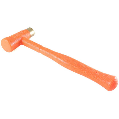 This orange dead blow hammer is perfect for leather or wood work - the strong one-piece pvc construction will protect your surface and still give you maximum strength. One-piece construction with an easy-grip, ergonomic handle. Head weighs 12 ounces. Overall 8-3/4 inches long with 3/4 inch diameter alloy head on one side and 1-1/8 inch PVC coated head on the other.This hammer is 8-3/4 inches long, with a head width of 3 inches Weighs 12 ounces, and has an easy to hold, ergonomic handle This hammer features a dual head, PVC side is 1-1/8 inches, and alloy side is 3/4 inches PVC 7-3/4 inch handle makes this hammer easy to hold and easy to hang on to- non slip surface This hammer will not scratch or cause sparks-perfect for many tasks