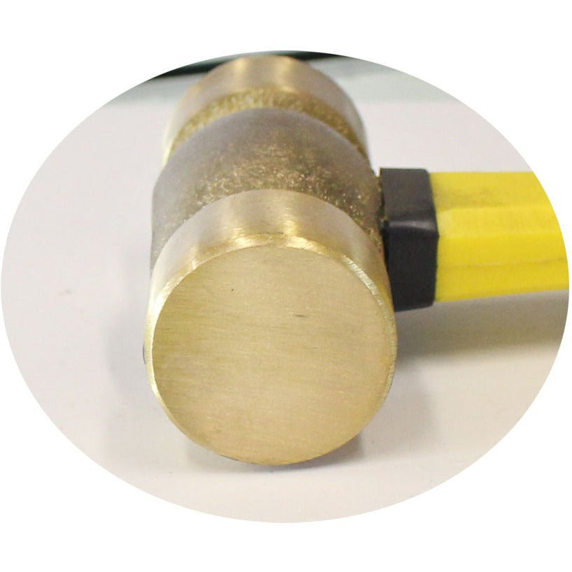 This heavy duty brass head hammer is truly the right tool for the job. Strong and study with it's fiberglass handle and rubber hand grip, this hammer will give you years of reliable use. Overall length is approx. 12.5 inches.