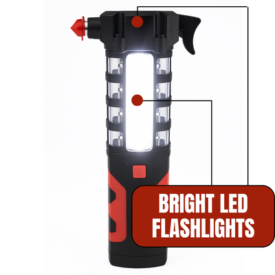 Multi-Purpose Emergency Tool – Equipped with a high-hardness hammer for breaking windows and a seat belt cutter for quick escape.