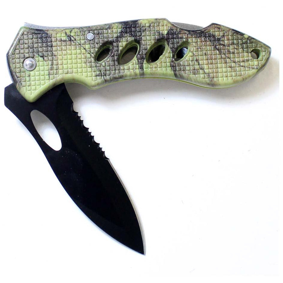 - CAMO HANDLE: A 4-1/4" (10.8 cm) woodland camo handle ensures a stylish, ergonomic grip for precision and control.