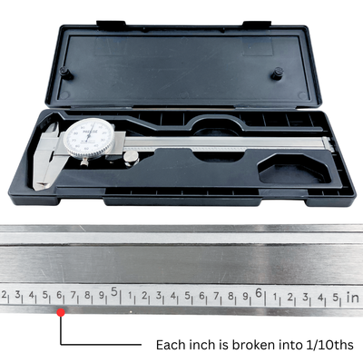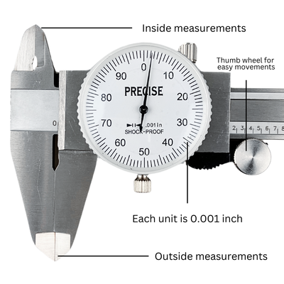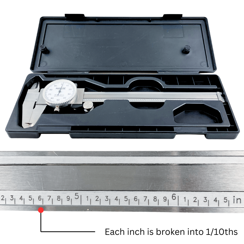 6" (15.24 cm) SAE Vernier Caliper | 0.001" Accuracy | Shockproof Dial | Stainless Steel | Satin Chrome Finish | 4-Way Measurement