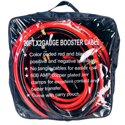 The ROAD GENIE 20-foot booster cable is a reliable and durable tool designed to help you jump-start your vehicle with ease. With a 2-gauge cable, it is capable of delivering a strong and steady charge to get your car or truck back on the road. The booster cable features color-coded red and black clamps for easy identification of the positive and negative terminals. The 600-amp copper plated aluminum jaw parrot-type clamps provide excellent contact and better transfer, ensuring a safe and efficient jump-start every time. Additionally, the cables are designed to prevent tangling, making them easy to use and store. The carrying pouch that comes with the booster cable makes it easy to store and transport, ensuring that you always have it on hand when you need it. The pouch is made of durable material to protect the cable from damage and keep it organized.