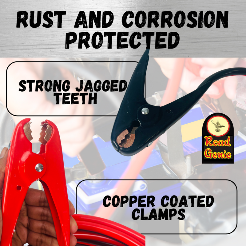 ROAD GENIE 20 Foot, 2 Gauge Booster Cable with Color-Coded Clamps and Carrying Pouch for Easy and Reliable Jump-Starting
