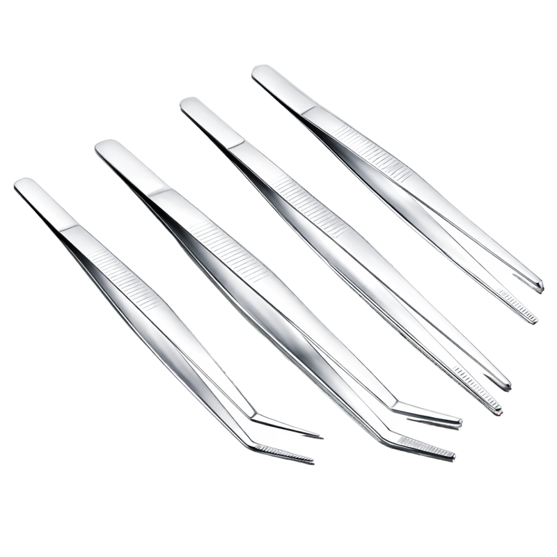 4 Pc Precision Tweezer Set – Straight & Curved Tips, Serrated Grip, 5"–7" Stainless Steel Tweezers – S1-08641