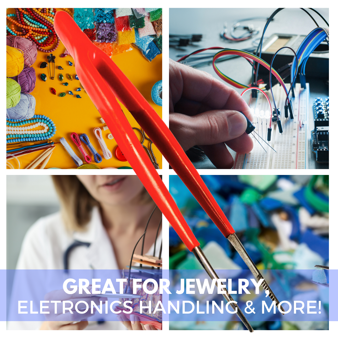 Slip proof and comfortable to use, these 6.5" tweezers will quickly become one of your favorite tools. Great for craft projects and much, much more. The thick vinyl coating will give you hours and hours of dependable use, and the jaws have tiny "teeth" to help you hold on.