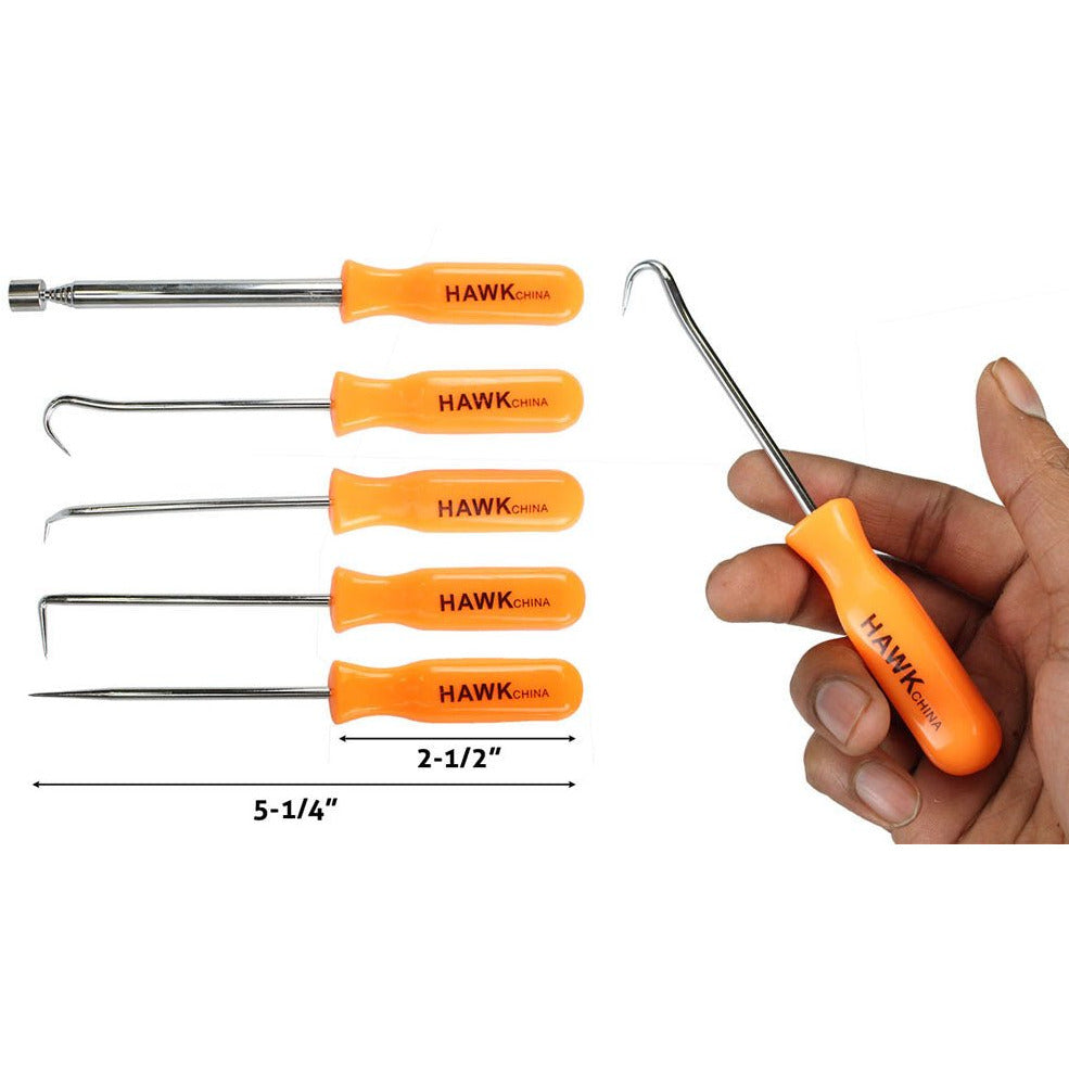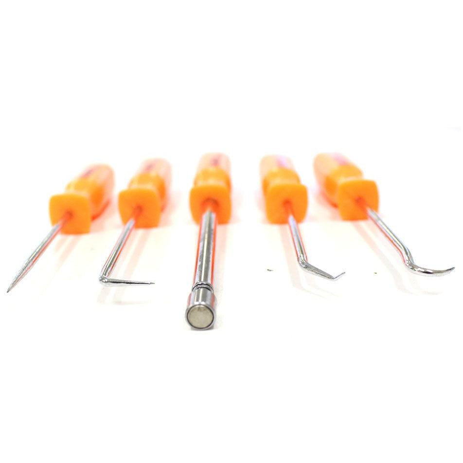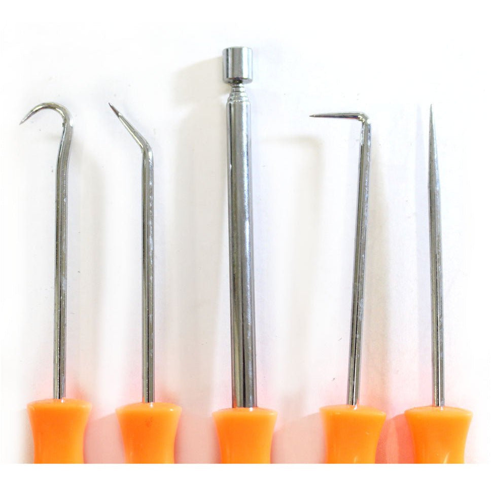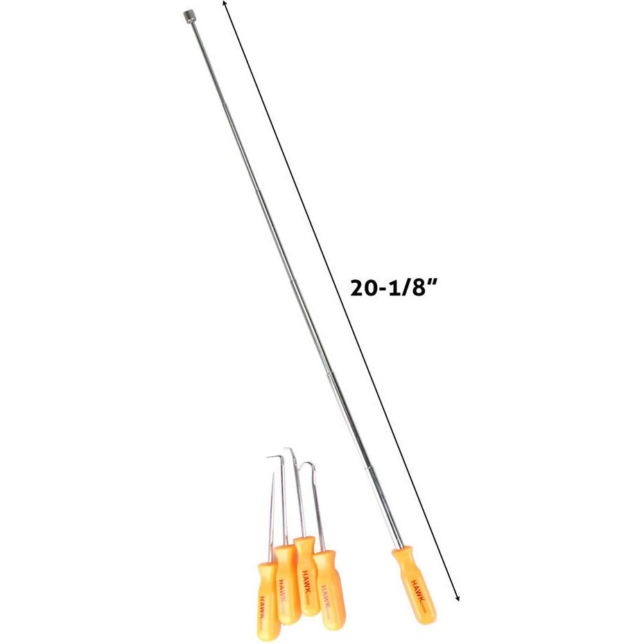 * 5 Pieces In All-included 4 Pieces Of Picks And Hooks, And One Magnet* 4 Different Shapes Including 90 Degree, And 45 Degree Angles* One Straight Pick, And One Twice-bent Pick-great For Cleaning Out Small Areas* Pieces Vary In Size From 5 To 6 Inches, And The Extendable Magnet Reaches 19 Inches* Strong And Durable, With Easy-grip Bright Orange Handles-dozens Of Practical Uses