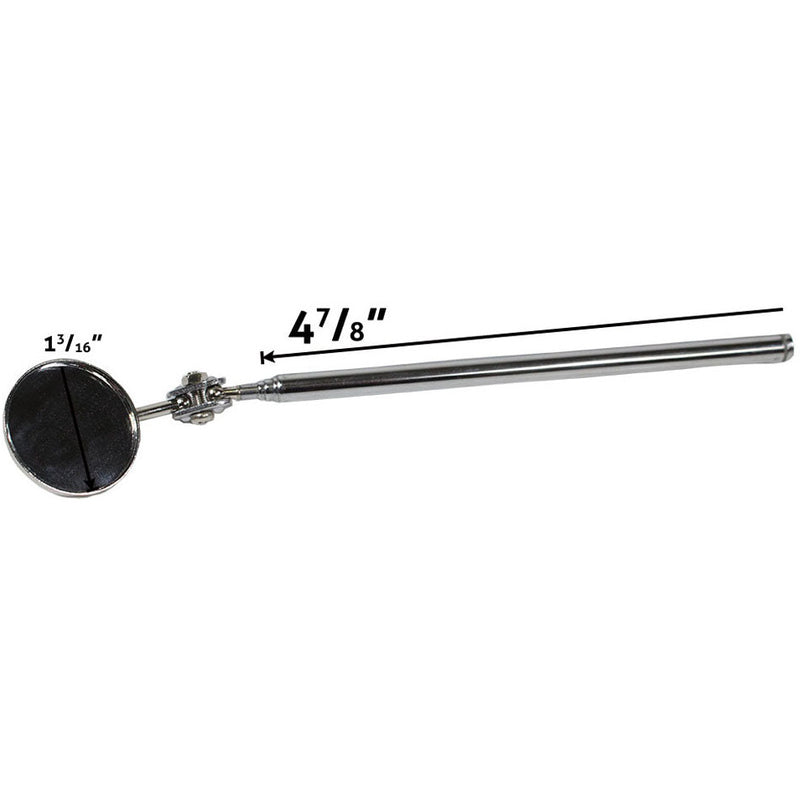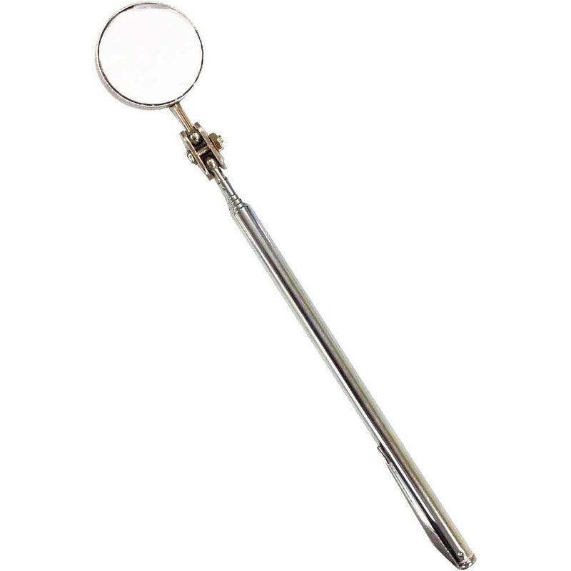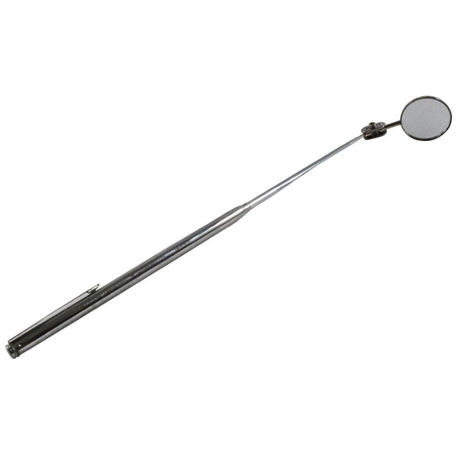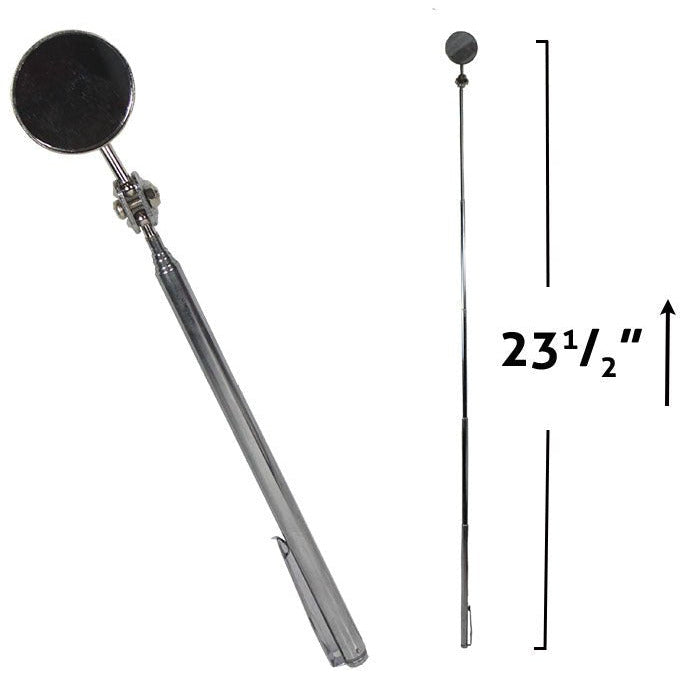 Equipped with a pocket clip to keep this mirror close at handDurable stainless steel constructionShaft can extend as far as 23.5"Mirror has a 1.25" diameter with 360 degree swivel to get the best anglesGreat for any confined or hidden spaces especially in offices or workshops!