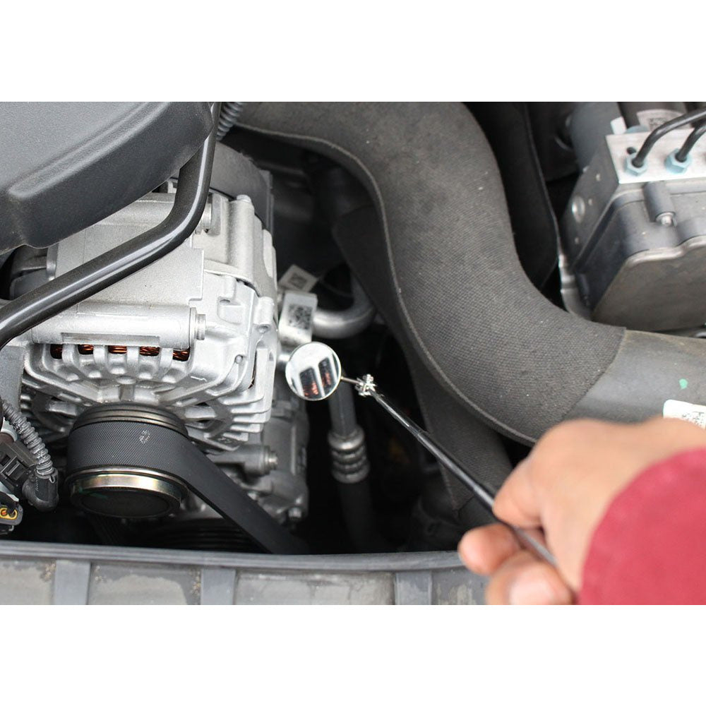 If you've ever dropped a piece of hardware or a small tool while working on your car's engine, then you will truly appreciate how handy this telescoping extendable mirror can be. This mirror can help you see behind and under hard-to-reach places you wouldn't be able to see otherwise. The head flexes and swivels to any angle and firmly holds its position.