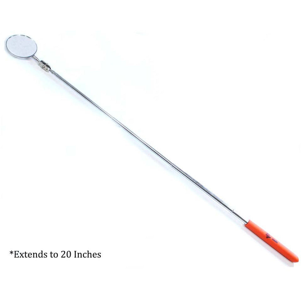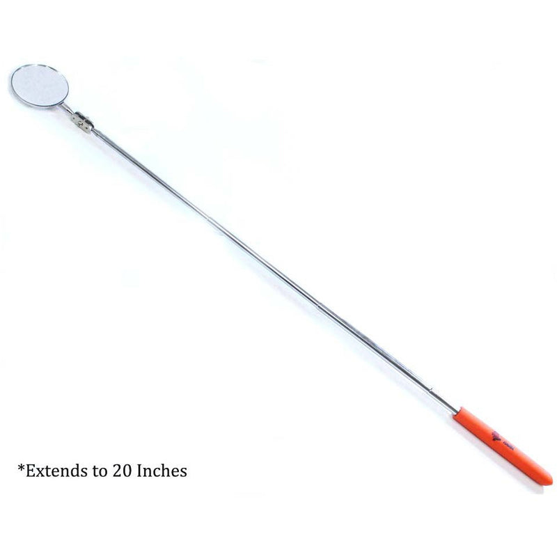 If you have ever been working on a car, and dropped a piece of hardware, you will really appreciate the importance of having this set in your tool box. Not only can you search with the mirror, where you can't reach, but once located, you can retrieve the lost piece with the pick-up magnet. This can save you a lot of time and frustration when you make repairs.* Extends up to 24 inches from 6.5 inches * 2 inch diameter mirror can pivot independently to reach anywhere * Dipped plastic handle for a comfortable and attractive grip * Chrome plated for surability - Will last for years with proper care *Can also be great for any place you are likely to drop small things- office, workshop, sewing room