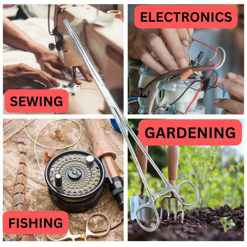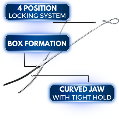 This hemostat is made of durable stainless steel, and was designed to be a surgical instrument. It's long handled design makes it ideal for reaching in with surgical sponges, sutures, etc.* Tiny "teeth" For Excellent Grip * Quick Release Clamp At Finger Grips * Professional Medical Quality