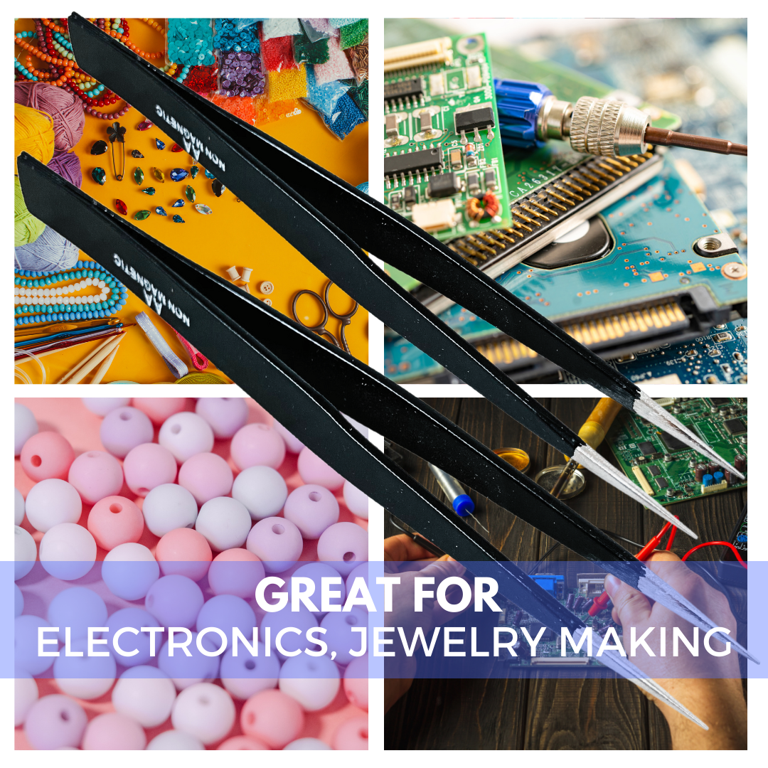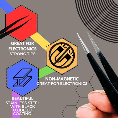 Made of steel, with nickel added to create a non-magnetic metal tweezer, these tweezers have a black oxide finish to prevent rust and corrosion, and to minimize light reflection. They have straight, needle tips, and are an excellent choice for working with electronic equipment, where a magnetic tweezer would not be acceptable.* These Black Oxide Finished Tweezers Are 5 Inches Long, And Weigh 0.7 Ounces * Made In India, These Tweezers Are Made Of Non-magnetic Metal-includes Plastic Tip Cover * Straight Needle Tips, Size Aa For Delicate Work, Requiring The Most Careful Touch * These Tweezers Are Excellent For Electronic Work, And Miniatures * An Excellent Choice For Various Applications In Jewelry Design And Crafting