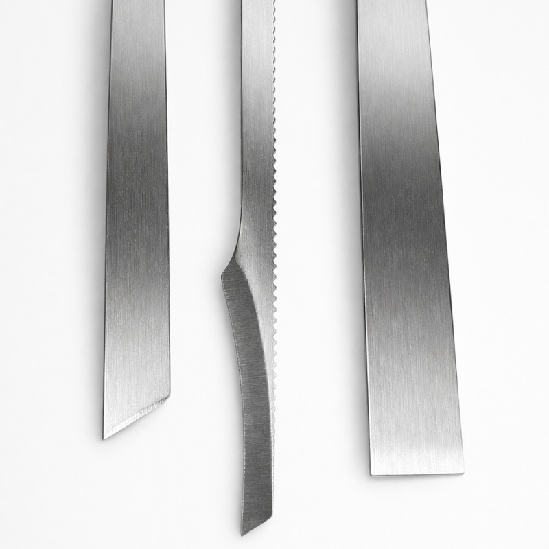 Maintain smooth, healthy feet with this 3-piece professional pedicure knife set, designed for removing tough calluses, hardened skin, and thick toenails. These precision tools are made from durable brushed stainless steel, providing long-lasting performance and allowing them to be cleaned and sterilized for hygienic use.