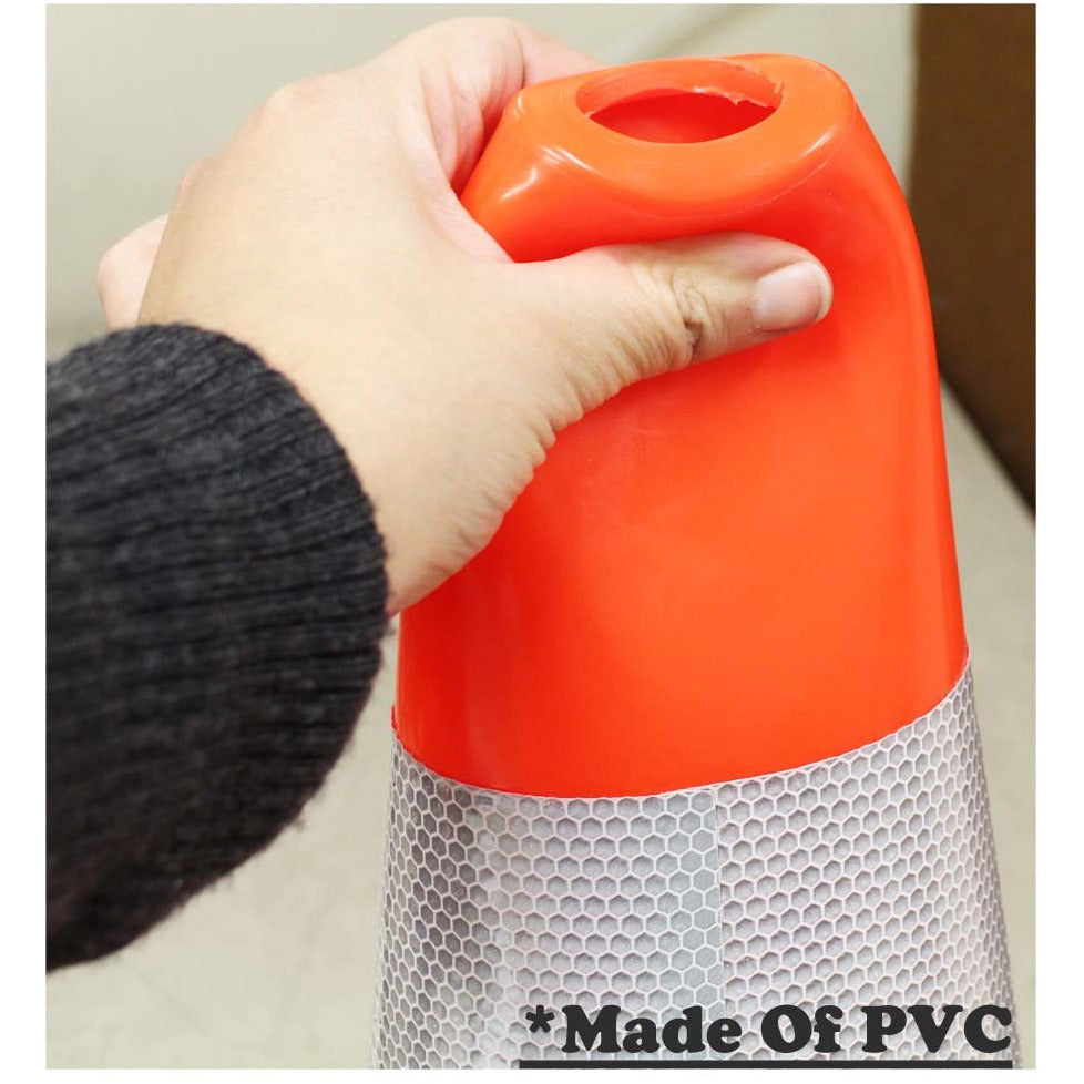This is a quality safety cone used by professionals everywhere. 18 inches tall, in bright orange PVC with a highly visible reflective strip near the top. Great for sports or construction areas. Use anywhere more visibility is needed!* Weighted base gives added stability - will not knock over easily like standard cones * Strong, sturdy PVC material in a bright orange color - good for use indoors or outdoors * Constructed for years of durability - bright colors will show up even at night * Highly visible orange with reflective strip - lights reflect off for the most visibility * Great for sports, soccer, football, construction, warehouse, parties, decoration, kids and more