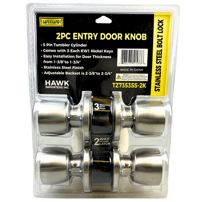 Upgrade your home security and aesthetic appeal with our Stainless Steel Two-Piece Entry Door Knob. Designed for durability and ease of installation, this entry door knob features a robust 5-pin tumbler cylinder, ensuring enhanced security. With a sleek stainless steel finish, it complements any home decor while providing a reliable, smooth operation. The set includes three nickel keys for your convenience, and the knob is adjustable to fit doors with thicknesses ranging from 1-3/8 inches to 1-3/4 inches. Perfect for both residential and commercial use, this entry door knob is the ideal solution for securing your entryways.