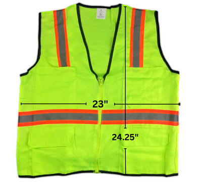 This Lime Green Safety Vest Is Made Of 100% Polyester Fabric, With A Zipper Front. This Vest Features Multiple Pockets, And 2 Inch Wide Silver And Orange Reflective Stripes, Front And Back. This Vest Will Provide High Visibility For Workers, Both Day And Night.* 2 Large Front Bottom Pockets, And 2 Upper Multi-pockets Provide For Pens Or Small Tools * 100% Polyester Fabric In Highly Visible Neon Green Colorr Size Small (59 X 61 Cm) * Reflective Stripes All Around The Mid Section And Over Both Shoulders & Down The Back * Stripes Are A 2 Inch Combination Of Neon Orange Fabric And Silver Reflector Stripe * Oversized Arm Openings Allowing Room To Be Worn Over Regular Clothing