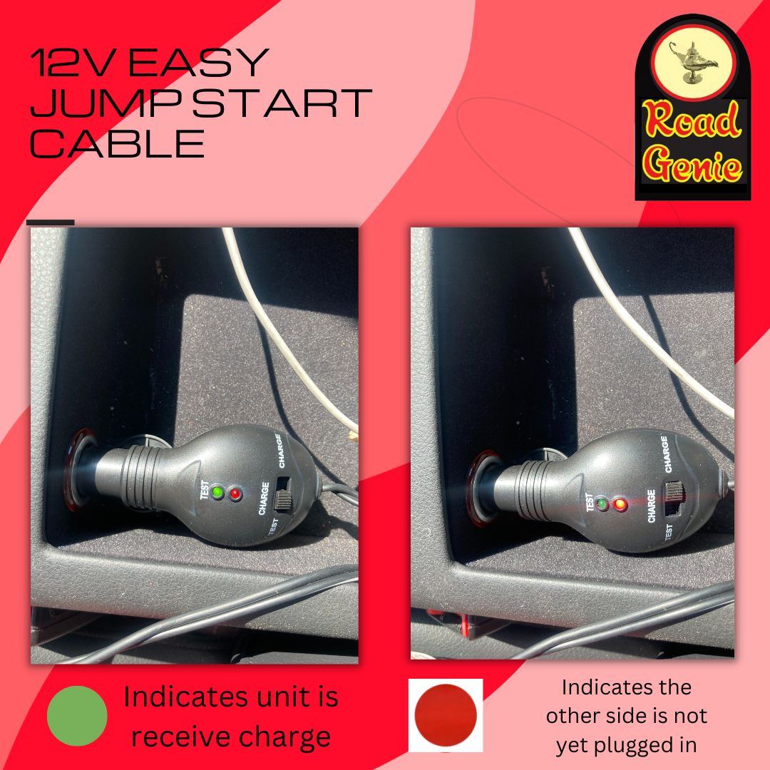 Now you can jump start a dead car battery without regular jumper cables. This portable jumper is easy to use. Just plug the small piece into the cigarette lighter of the car with the working battery, (make sure to keep the vehicle running so you don’t' drain the battery), and plug the large piece into the cigarette lighter of the car with the dead battery. Flip the switch to "Charge", and before you know it, the dead battery is able to start up again. Just as effective as jumper cables, but much easier to store in your vehicle.* This item is a compact size, and easy to store in any vehicle