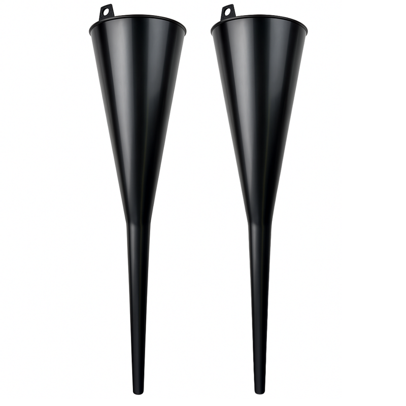 2 Pc. 18" Extra-Long Plastic Funnel with 5" Wide Mouth – Flute-Style Narrow Base for Oil, Gas, and Transmission Fluids