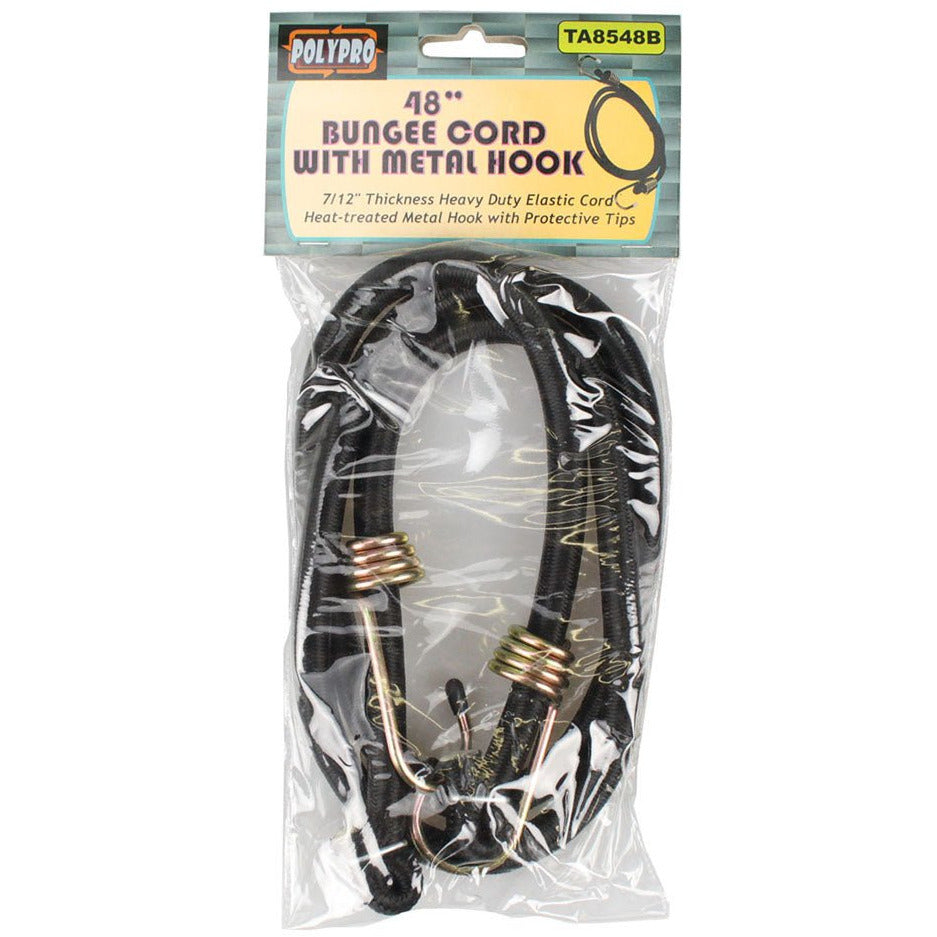 48 Inch Heavy Duty Black Bungee Cord with Rubber Tipped Hooks (Pack of: 2) - TA-88548-Z02