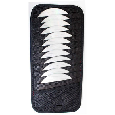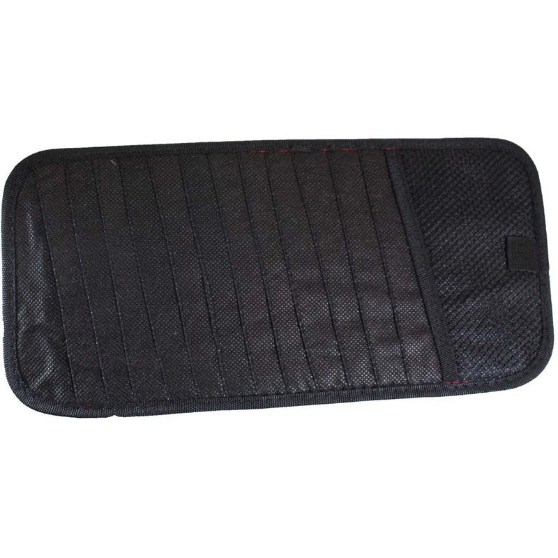 This Handy CD Holder Fits Right On The Back Of Your Car's Sun Visor, And Fastens With Hook And Loop Strap To Hold It Firmly In Place. It Wll Hold 12 Cd's Safely. There Is Also An Additional Pocket in The Front Which Is About 2.75 Inches Tall and 5.5 Inches Wide - Great For Storing Small Things As Well. The Fabric Is Soft And Will Not Cause Any Damage To Your Cd's. Great For Everyday Driving, But Also Perfect For Longer Road Trips. You Can Listen To Your Own Cd's When You Travel Out Of Range Of The Local Radio Stations.* Measures a rectangular 13-inches x 6-1/8-inches - sleek and compact design to store your CDs * Available only in the black color - a neutral color which will look good in your car * Holds 12 CDs + has a front sliding container which can hold notepads, sticky notes, erasers, etc! * Soft, non-scratching black quality fabric - you movies and music will stay protected! * Attaches to your visor with two elastic straps located in the back - easy slip on!