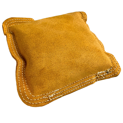 This leather sand bag helps hold bench blocks and anvils in place while flattening wire, chasing metal, and using punches. It also helps to reduce noise and vibration from hammering. This bag is constructed of suede with double-stitched and glued edges. It is filled with sand to absorb the shock and noise of pounding metal.
