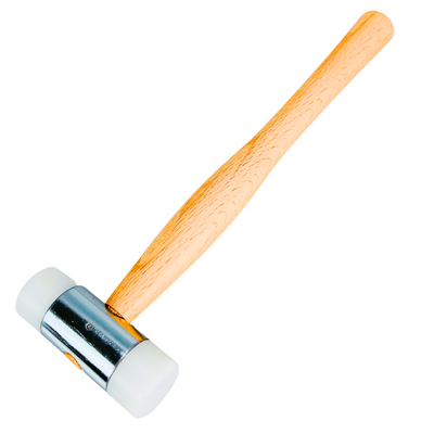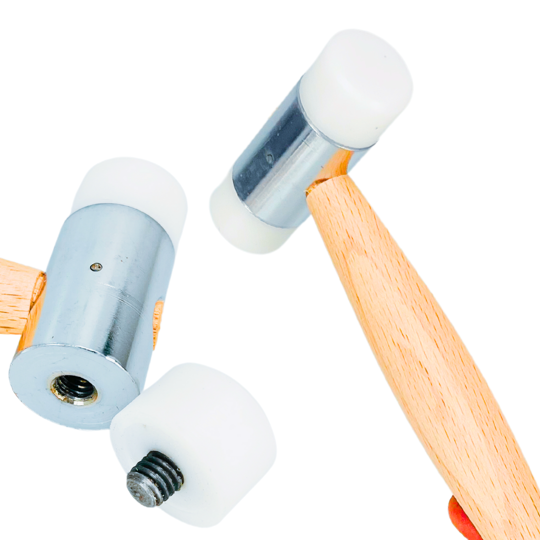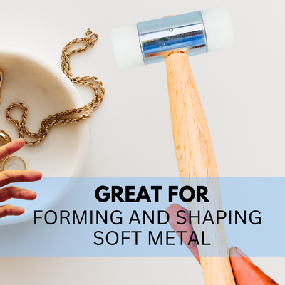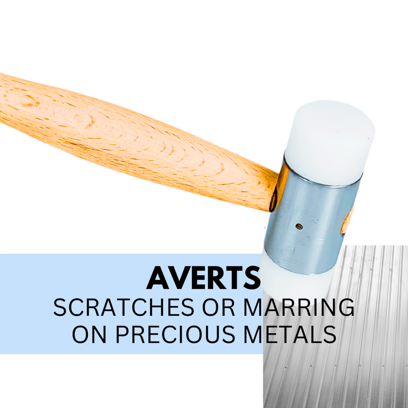 This Is One Handy Little Jewelry Hammer. It Features A Solid Wood, Smooth Finished Handle, And Dual Ended Nylon Heads, Attached To The Handle With A Sleeve Of Steel. This Hammer Will Not Put Marks On Your Precious Metals, Nor Cause Sparks When Striking. You Will Love The Excellent Balance And The Ease Of Handling.* This hammer is 10 inches long overall, with a weight of 7.1 ounces * This one is equipped with a double nylon head that won't scratch metal * The solid wood handle extends all the way through the head of the hammer * Each side of this nylon hammer head has a 1 inch striking surface to work with * Ideal for working with precious metals for creating beautiful jewelry