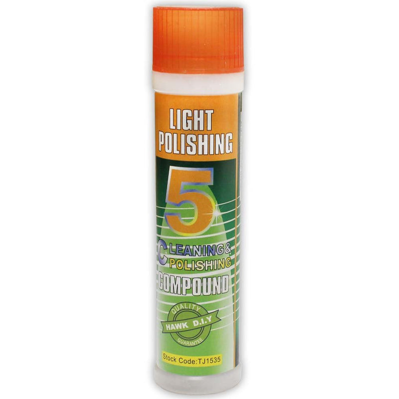 This cleansing and light polishing compound works great on any metal or plastic surfaces. For best results, place compound on cloth or wheel, and heat metal to be polished by placing in the oven or in the sunshine. Warm metal will polish more clearly with fewer compound deposits.* For Light Cleaning And Polishing On Any Metal Or Plastic Surface * This Compound Will Not Scratch Your Metals, Whether Hard Metals Or Precious Metals * This Cleaning And Polishing Compound Works With A Cloth Or A Buffing Wheel * Makes Your Metal Objects Look Shiny And New Again- Professional Use Of Do-it-yourself * This Container Is Labled With A Number 5 And Has An Orange Cap And Label For Easy Identification