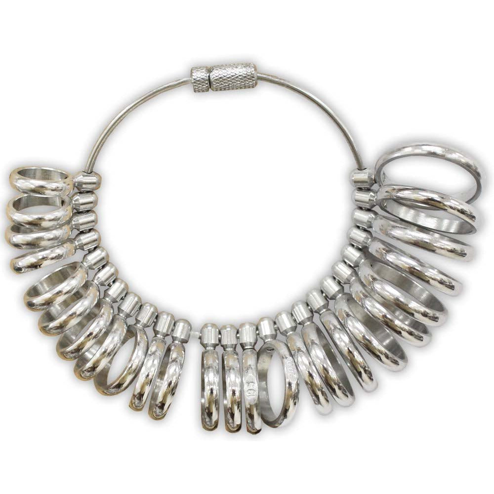 This Ring Gauge Has 25 Pieces, Measuring From 13mm To 25mm In Half Steps. A "must Have" Item For Anyone Who Makes, Sells, Or Repairs Jewelry.* Rings Are Made Of Shiny Stainess Steel, Attached To A Large Ring * Sizes are measured from 13 mm to 25 mm (diameter) in half-size steps * Screw-type closure on large ring holder * Thicker rounded "wedding band" style ring sizers * Professional quality