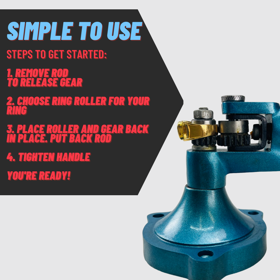 SIMPLE TO USE: Once you find the roller that suits your ring, you simply have to switch in the machine, place your ring, tighten the handle and rotate the handle to enlarge