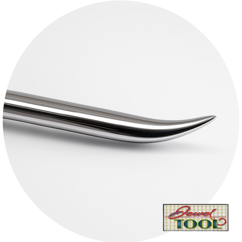 Shiny curved steel tip with a pointed end for precision finishing