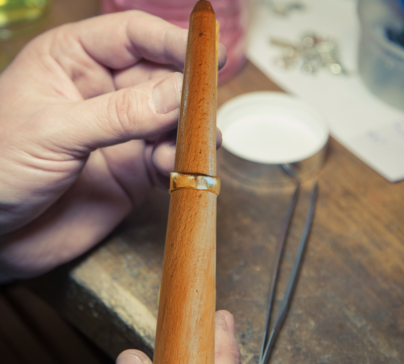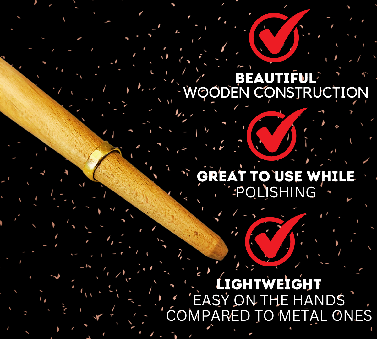 This 7" wooden ring mandrel has a smooth finish and is perfect for workbench uses like polishing. It will shape and remove dents from rings. The tapered hardwood has a no-mar finish to protect your ring. Diameter approximates to 1".* Great To Use For Ring Buffing And Polishing * Perfect For Removing Dents And Kinks * An Essential Tool For The Jeweler And Any Kind Of Metal Worker * Wooden Ring Mandrel Has A Smooth No-mar Surface Finish