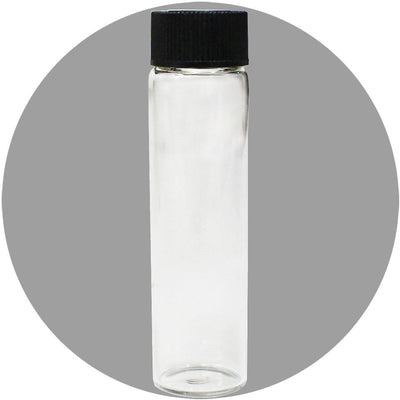 - * Bottles Are Clear Glass, With Black Plastic Screw-on Caps