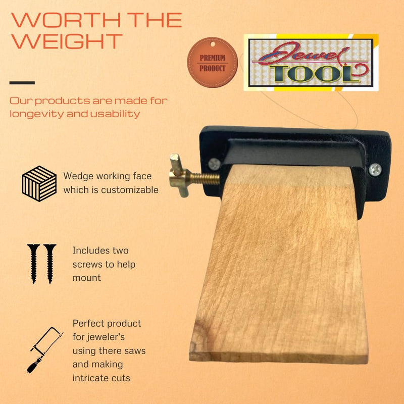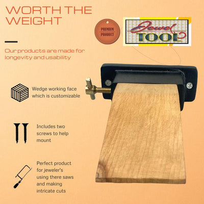 This jeweler's wooden anvil is the ideal work-mate for the jeweler. It has pre-drilled mounting holes for permanent attachment to your work bench, and includes all hardware needed. The smooth wooden surface is ideal for all your detail sanding and filing work. You will love it's compact size (only 5-3/8" x 3.75").