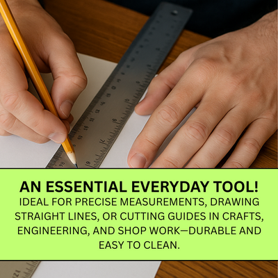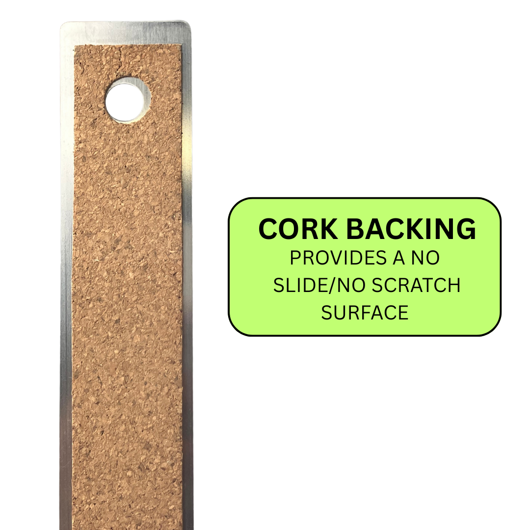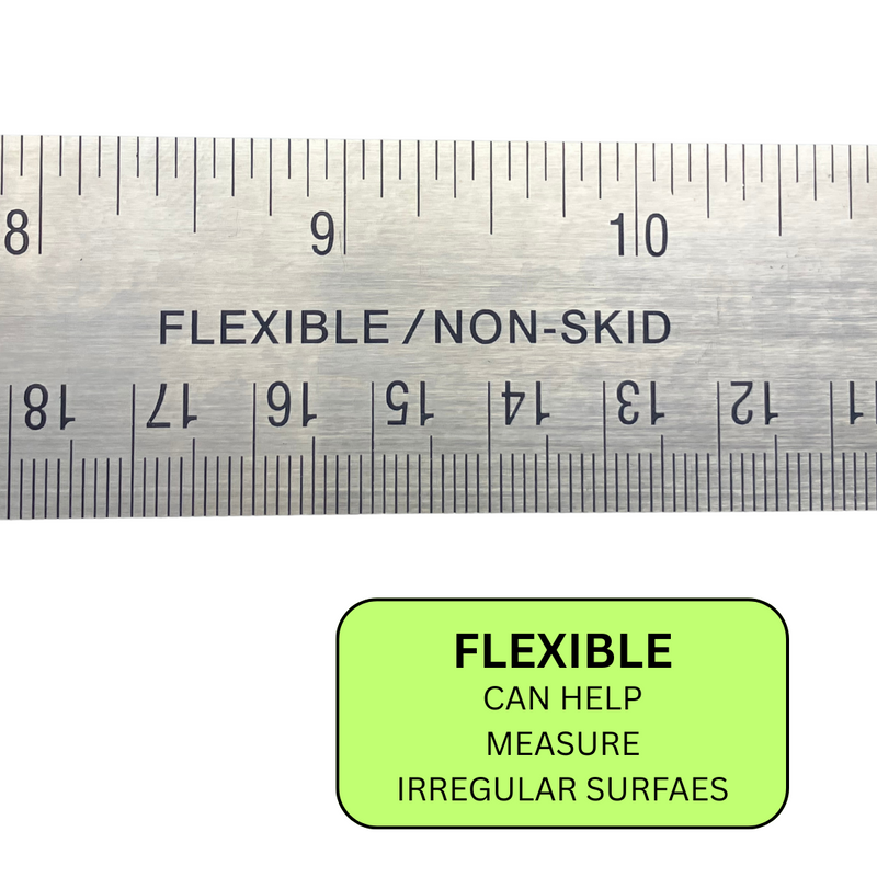Now you can cut with your mat knife and get a clean edge every time. This artist's ruler has a cork backing to raise it from your cutting surface. Flexible and non-skid, you'll use this for all your projects! This ruler is 15 inches long, and is made of quality stainless steel. It measures in both metric and SAE.* 15 inches long stainless steel ruleris great for every project - both small and large * Cork backing gives a raised surface from your cutting board while providing a non-skid surface * Ruler measures in both SAE(inches) and metric sizes - one on each end! * Cork backing also provides a flexible ruler and a no scratch surface for all delicate projects * Has a handy hanging hole for easy reorganization and storage even in limited space
