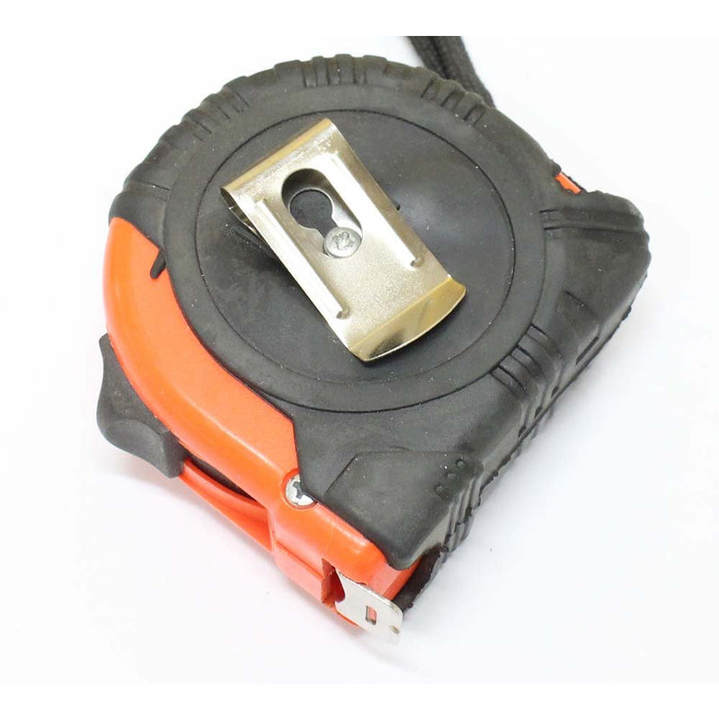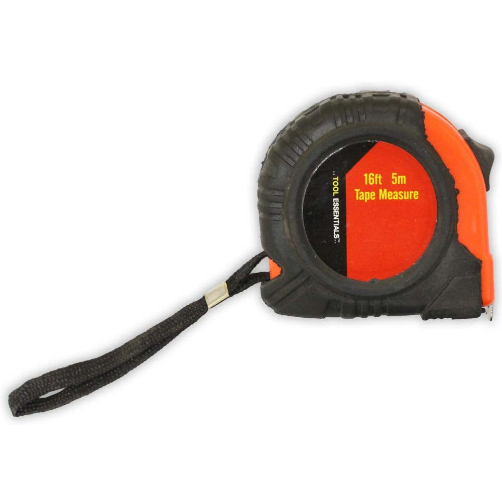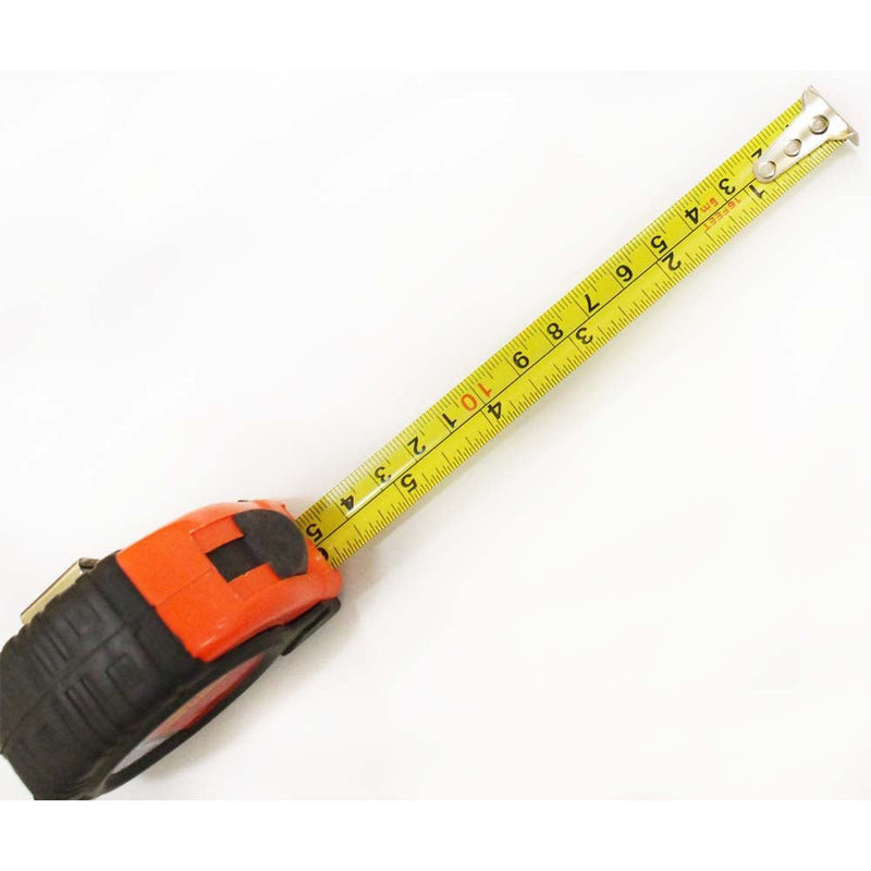 This handy tape measure will be convenient to carry along with you on the job, with it's metal belt clip and nylon strap handle. The mint green plastic body is covered in a black rubber cover for slip resistance. The tape is yellow metal with highly visible black writing, and the end cap is fastened with 3 rivets to prevent it from being swallowed up during the automatic retraction. This tape measure features a brake button to hod the tape in position until your release it.This tape measure is 16 feet long-or 5 meters-great for a construction job You can measure floors, walls, furniture, lumber and much more The mint green color is easy to spot in your tool box, and it has a rubber cover The metal tape is bright yellow, with easy to read black printing (color can also be red) Measures 2-1/4 x 2-1/4 inches and weighs 5.2 ounces