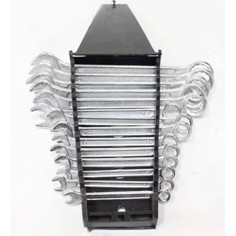 Perfect for the handyman in the family, this gift set will give him every wrench he can think of! Made of drop-forged steel for years of use, he'll thank you everyday when he uses this set. Sizes include: 6mm, 7mm, 8mm, 9mm, 10mm, 11mm, 12mm, 13mm, 14mm, 17mm, 19mm, 20mm, 21mm, 22mm.comes with its own wall-mount storage rack. Makes a great gift!* 14 Sizes * 6, 7, 8, 9, 10, 11, 12, 13, 14, 17, 19, 20, 21 22 mm * Drop forged - chrome plated - long lasting & dependable set * Rack can hang on wall - made of durable plastic * Great additon to a handyman's toolbox!