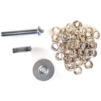 Repair Your Sails, Swimming Pool Covers, Sleeping Bags And Tie downs The Professional Way. The Zinc Plated Grommet Punching Tool Is Drop Forged (3 Pieces Included), 50 Silver Color Grommets And 50 Silver Color Washer Sets Included. Will Require Additional Hammer Tool In Order To Complete The Job (not Included).