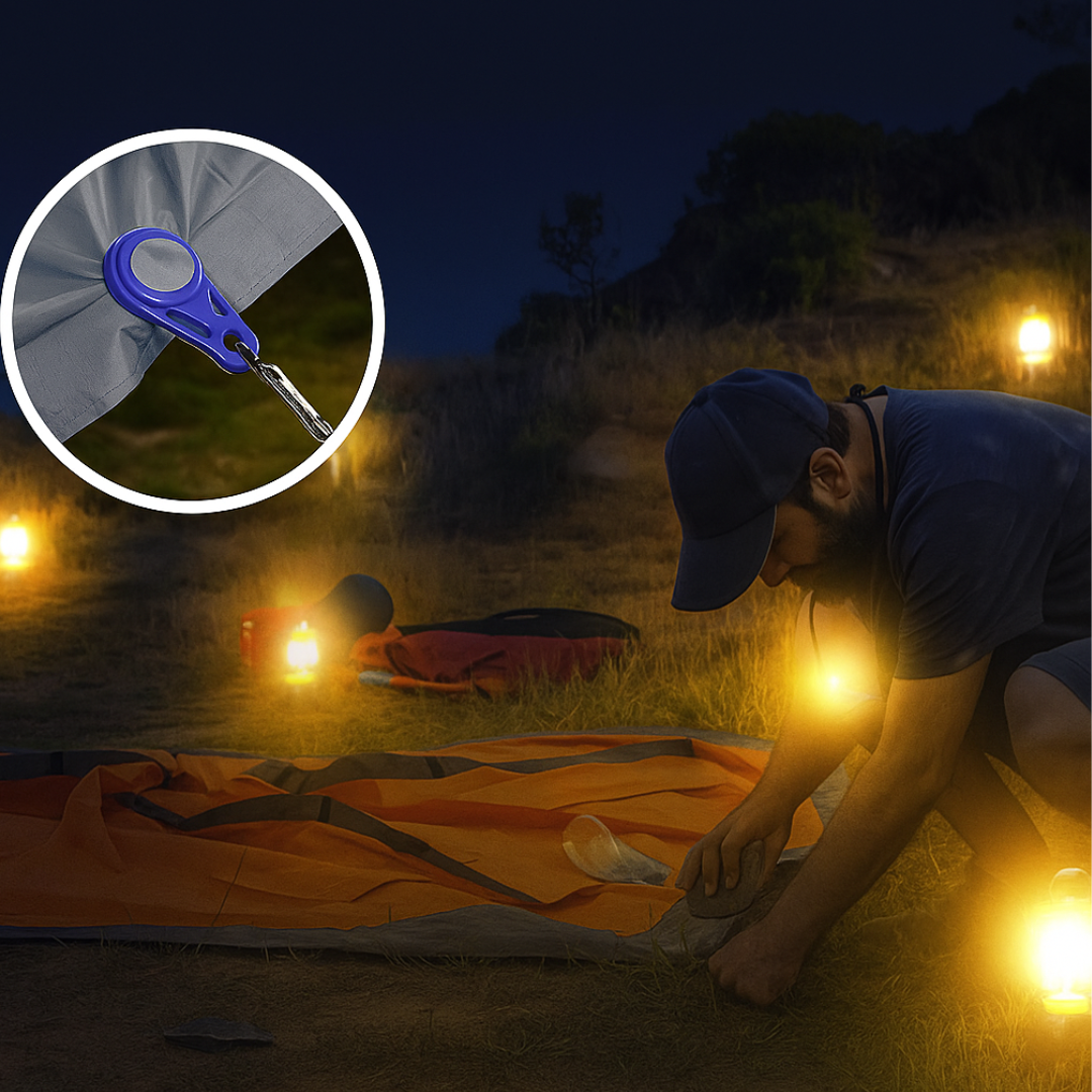 When a tarp rips or runs short on grommets, these handy snap clamps come to the rescue. Just wrap the edge of your tarp or fabric into the clamp and snap it shut — no tools needed. Each clamp has a built-in hole that allows you to easily attach bungee cords or rope for secure tie-downs. Made from durable, reusable material, they provide extra strength and stability for your projects, camping gear, outdoor coverings, or temporary shelters.