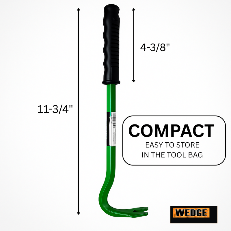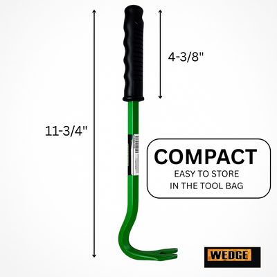 Tackle even the most stubborn nails with ease using this heavy-duty nail puller. Built from forged steel for superior strength and durability, this tool is designed to get the job done fast. Measuring 12 inches in overall length, it features a 4-inch plastic handle for enhanced grip and comfort during use. The claw section extends approximately 2.5 inches from the bend, with an opening size of 3/4" long by 3/8" wide—ideal for a wide range of nail sizes.