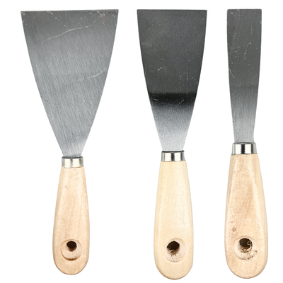 This Scraper Set Is Just The Thing For Any Handyman, Do-it-yourselfer Or Professional. Whether You Need To Clean Paint Drips From Floor Tiles Or Window Glass, You Are Refinishing A Piece Of Furniture, Or Scraping Away Peeling Paint Or Old Wallpaper, These Scrapers Will Do The Job For You Everytime. They Will Fit Into Your Toolbox Or They Have Handy Hanging Holes For Your Workshop Wall.*Flat edged * Sizes 25, 50, 75 mm * Wooden Handles with holes for hanging * For Home Or Industrial Use * Polished metal surface