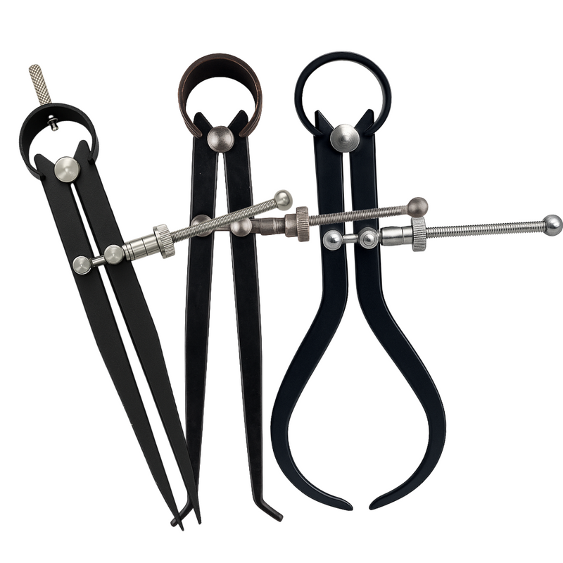 This professional 3-piece caliper set includes inside, outside, and divider calipers—each crafted from hardened carbon steel for strength, durability, and precision. With a 7" length and locking screw mechanism, these tools allow accurate measurement of internal dimensions, external dimensions, and circumferences. Perfect for workshops, metalworking, classrooms, and labs.
