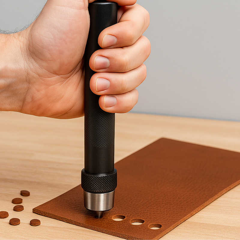 You'll Find The Center Accurately Every Time With This Set Of Punches. The Set Includes: 5, 6, 8, 10, 12.5, 16, 20, 25, And 32cm Sizes. Each Piece Screws Onto The Handle Securely With The Tip Of The Point Exposed, So A Quick Tap Will Mark Your Center. This Set Comes In A Wooden Box With Metal Hinges And Clasp.* This hollow punch set comes in a wooden box, and weighs 2 Lbs., 4 Oz. * Holder measures 5-3/4 inches from tip, and is 3/4 inches in diameter-9 punches and 1 holder * The hollow punches have textured surface for easy handling * Set includes: 3/16, 1/4, 5/16, 3/8, 1/2, 5/8, 25/32, 1 and 1-1/4 Inch sizes * Metric sizes include: 5, 6, 8, 10, 12-1/2, 16, 20, 25, and 32mm
