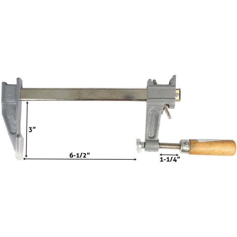 Made Of Strong, Forged Metal With A Wooden Handle; Sure To Hold Tightly To Get The Job Done! This All Metal Clamp Adjusts On Stick Shaft Up To 6" Range, Then Finely Adjust With Screw Up To 1 1/4". Fine-adjust Handle Is Made Of Wood.
