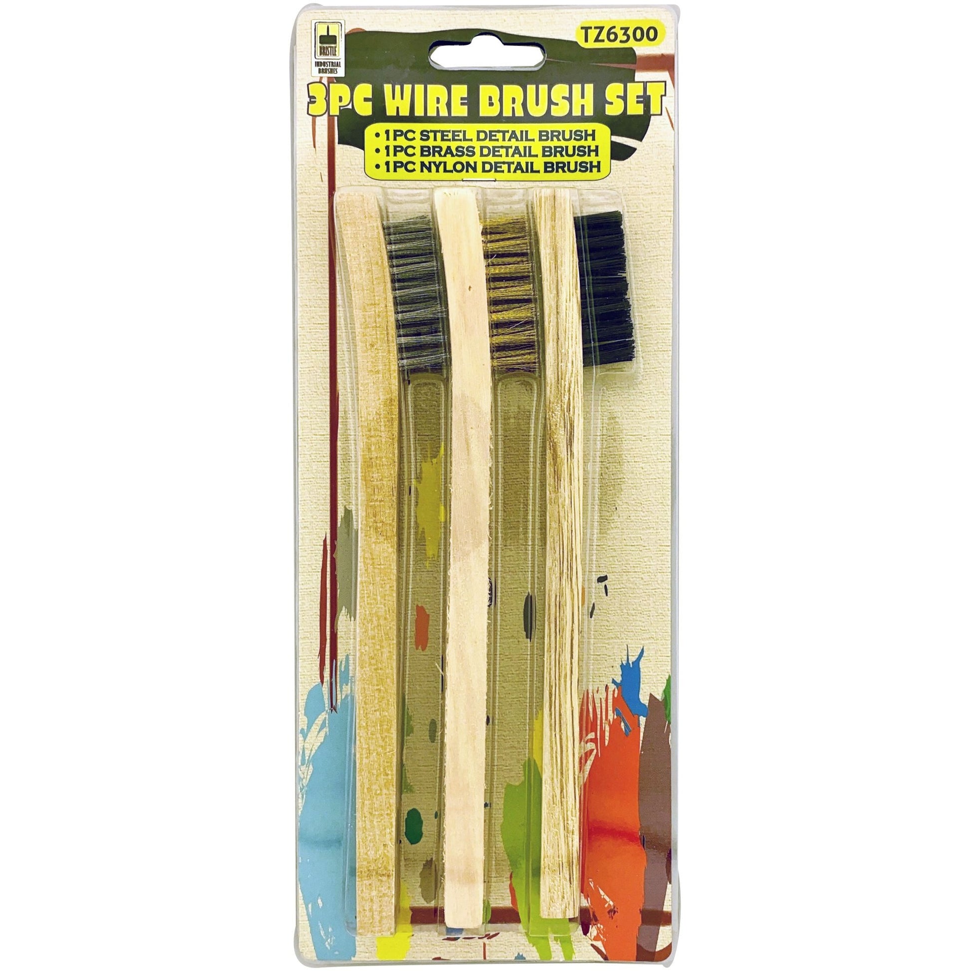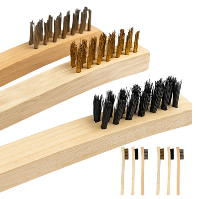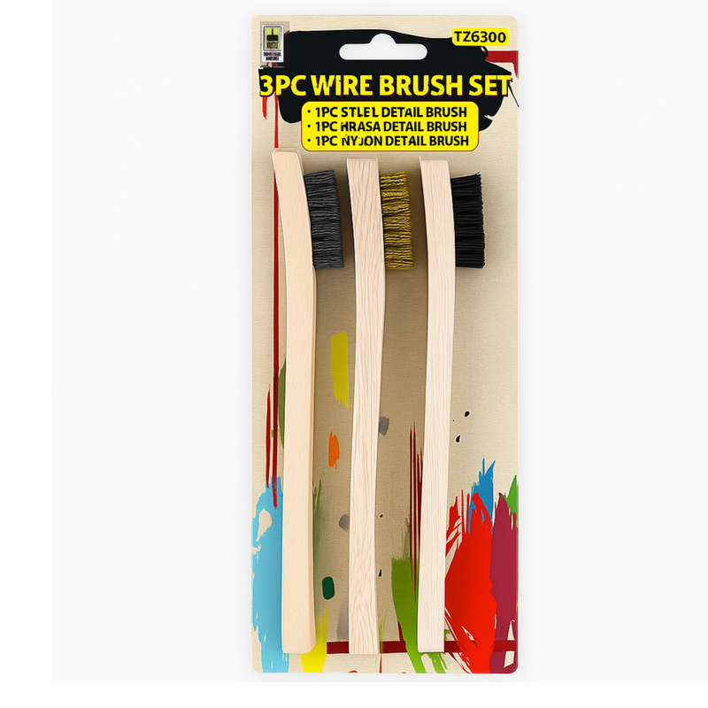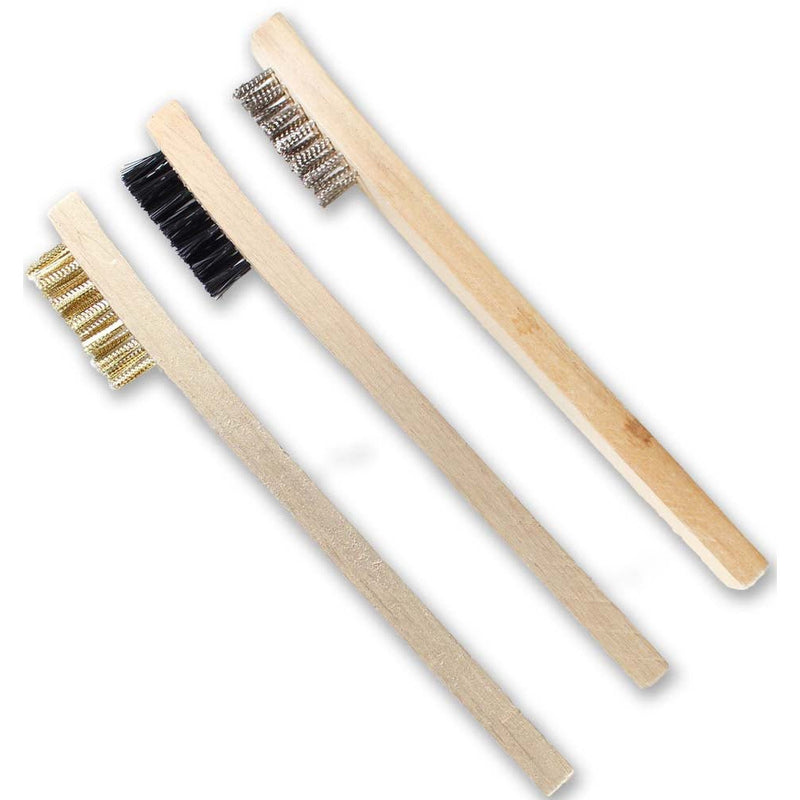 Tackle a variety of cleaning jobs with this versatile 3-piece wire brush set, featuring steel, brass, and nylon bristles. Whether you need soft, medium, or hard bristles, this set has the perfect brush for the task. Their compact size and comfortable wooden handles make them ideal for getting into tight spaces and handling detailed cleaning work around the home, garage, or workshop.