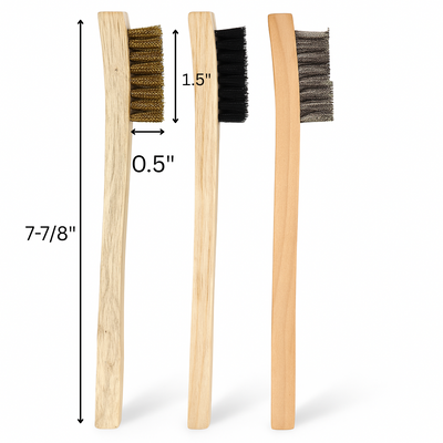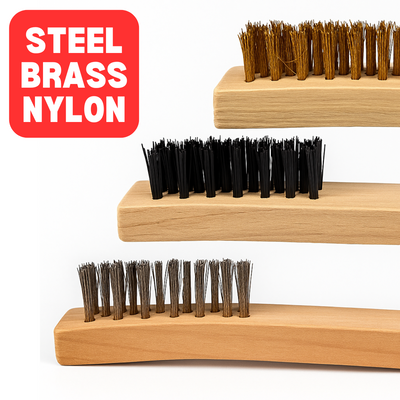 3 Brush Types – Steel for tough jobs, brass for delicate metal cleaning, nylon for gentle surfaces